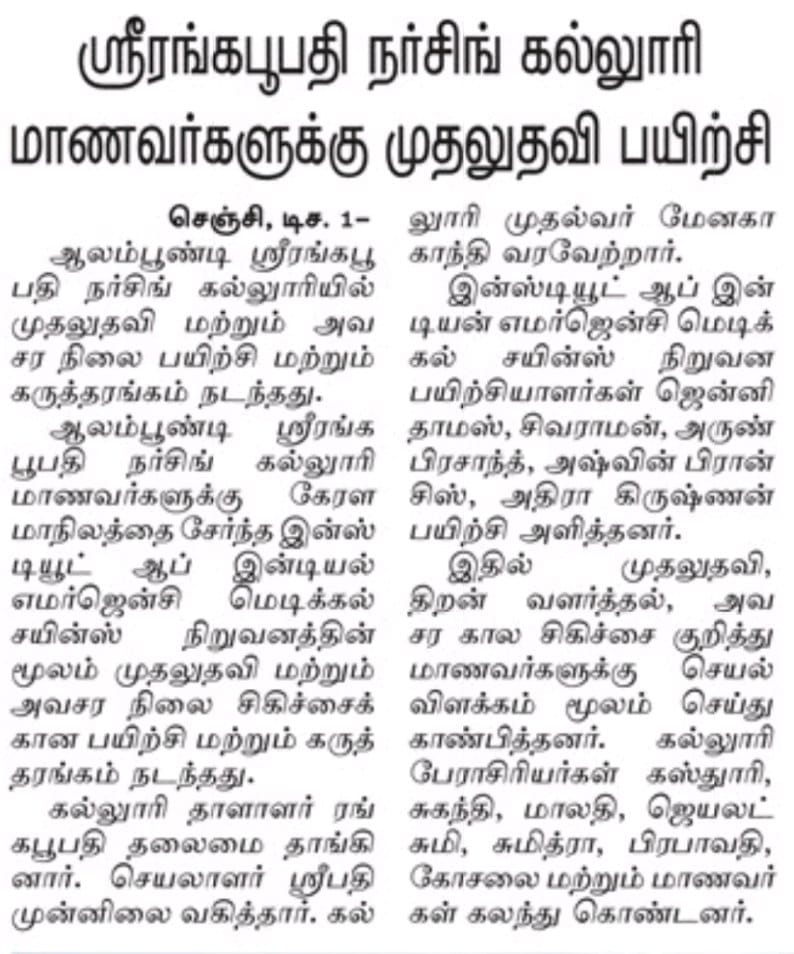 FIRST AID Emergency Training Posted by Categories News & Updates Date November 30, 2023 Share: Previous post 2019-2023 Batch Toppers November 30, 2023 Next post Memorandum of understanding with LUMINA DATAMATICS December 22, 2023 You may also like Farewell – 2024 15 November, 2024 World Blood Donation Day – 2024 15 June, 2024 World Hypertension Day – 2024 13 June, 2024